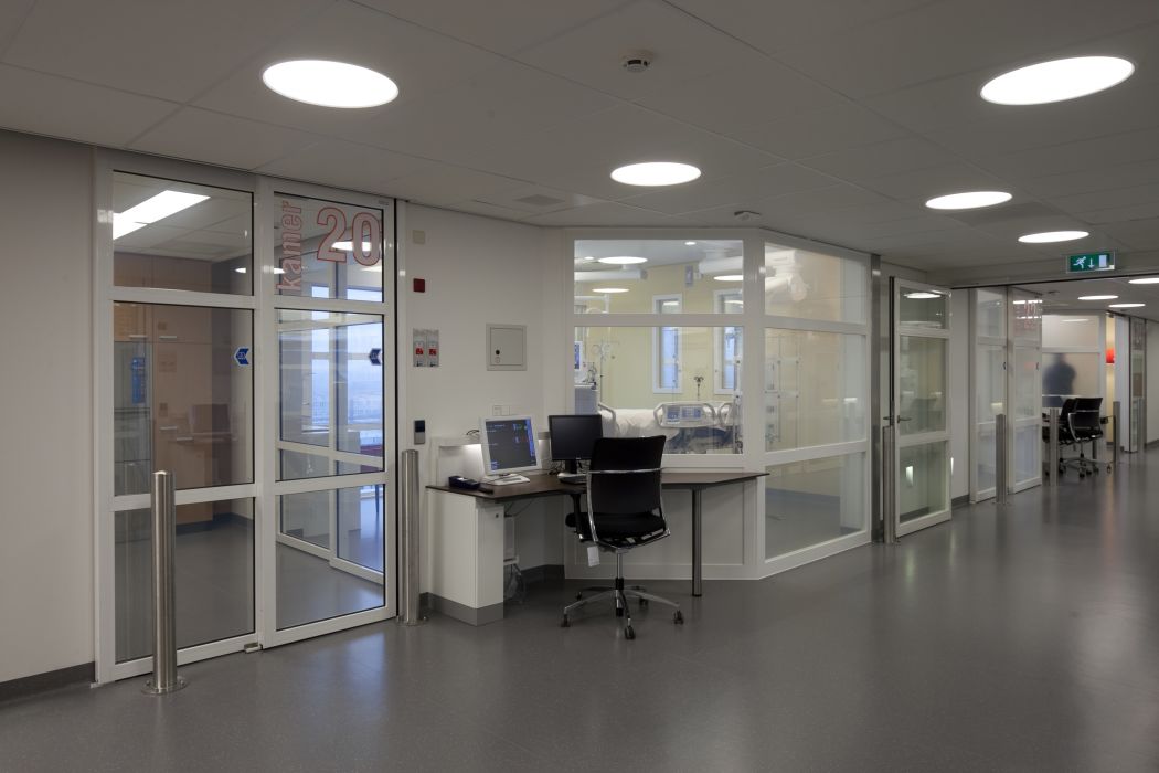 De ruimten van de intensive care afdeling zijn gepositioneerd rond 4 patio's waardoor alle ruimten toegang hebben tot natuurlijk daglicht. Valtos Architecten heeft de prestigieuze ICU Design Award ontvangen voor dit ontwerp van ‘The Society of Critial Care Medicine (SCCM)‘. Een onderscheiding voor een architectenbureau en ziekenhuis voor het ontwerpen en realiseren van een Intensive Care afdeling waarbij de aandacht voor de fysieke omgeving in belangrijke mate bijdraagt aan het herstel van de patiënt: een healing environment.