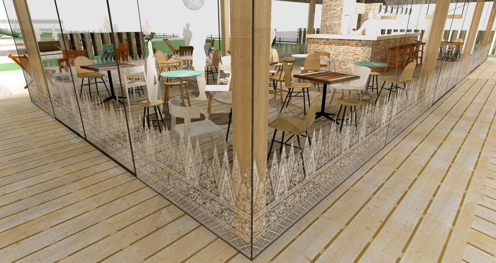 Een ontwerpstudie en haalbaarheidsonderzoek voor een nieuwe horeca voorziening in het Vondelpark te Amsterdam. Het volumieke ontwerp is gebaseerd op twee haakse hoofd-looplijnen die het park en de locatie doorkruisen. Bij de materialisering is er rekening gehouden met de natuurlijke omgeving en het dak refereert metaforisch naar het karakteristieke naastgelegen monumentale theehuisje. Het dakvolume lijkt door de volledig transparante begane grond te zweven en van buitenaf gezien erg zwaar voor het ondergelegen glazen volume van het grand café. In het souterrain zijn (openbare) toiletten voorzien alsook de keuken.