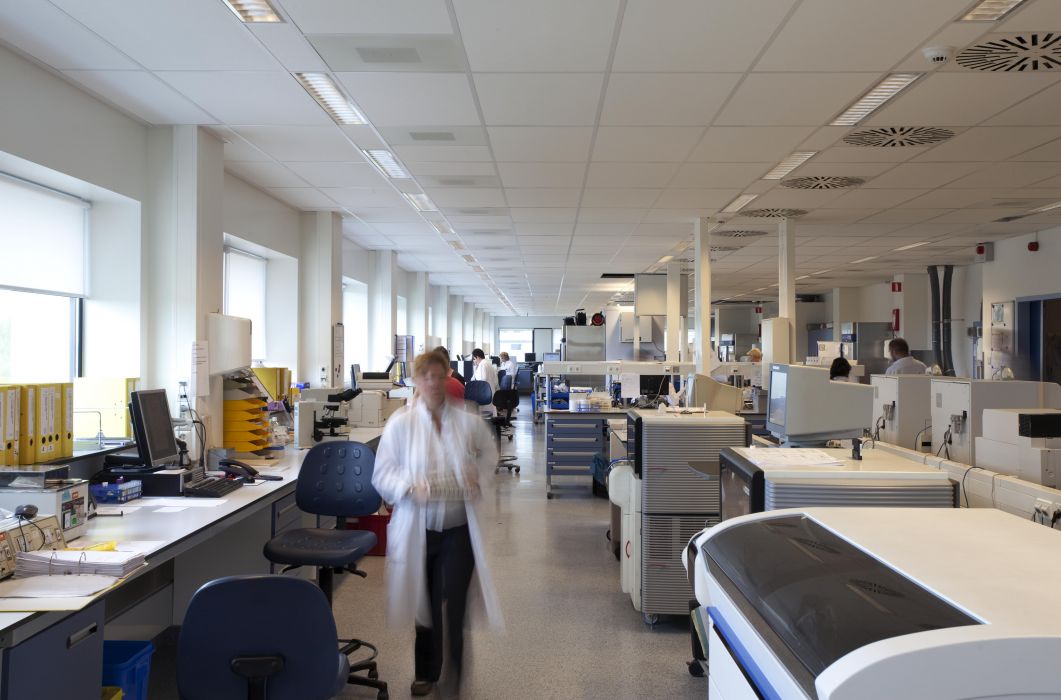 Een grootschalig renovatieplan is opgesteld voor het laboratoriumgebouw van het Reinier de Graaf Gasthuis doordat deze sterk verouderd was. Door een heldere aanpak van de gehele verbouwing kon deze zonder interim voorzieningen voltooid kon worden. Dit laatste werd mogelijk door in de eerste fase zowel de terugliggende dakverdieping als de begane grond te vergroten waardoor er de benodigde wisselruimte ontstond . Op het dak is een nieuw installatieruimte gerealiseerd. Door een intern verhuisplan van de afdelingen kon er telkens gefaseerd een afdeling verhuizen naar haar nieuwe locatie, waarna de vrijkomende ruimte weer verbouwd kon worden voor de volgende afdeling. Het gebouw beschikt nu over een nieuwe entree, een eigen restaurant, een opleidingsafdeling, meerdere laboratoria voor onder andere histologie, cytologie, farmacie, chromatografie, bacteriologie, virologie en een 24-uurslaboratorium.